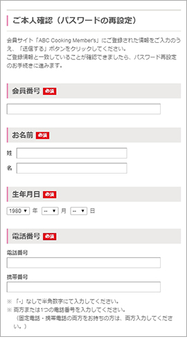 【STEP1】ご登録の会員情報を入力(ご本人確認)