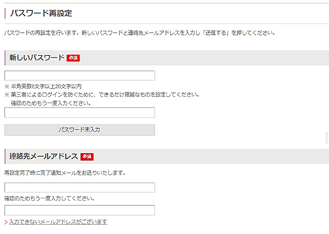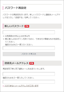 新しく設定したパスワードの設定完了メールが、連絡先と登録のメールアドレスに届きます。